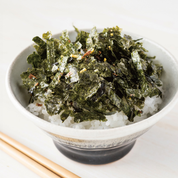 | 味付のり(乾のり、しょうゆ、砂糖、その他)(国内製造)、調味かつお(かつお削りぶし、しょうゆ、砂糖、グラニュー糖、その他)(国内製造)、食塩、抹茶調味顆粒、たまご調味顆粒、青のり、/調味料(アミノ酸等)、甘味料(ステビア)、香辛料、酸化防止剤(V.E)、着色料(クチナシ、紅花黄、V.B2、アナトー)、(一部に小麦・卵・乳成分・大豆を含む) |